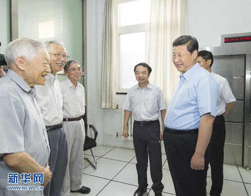7月17日,中共中央總書記、國家主席、中央軍委主席習(xí)近平到中國科學(xué)院考察工作。這是習(xí)近平同當(dāng)年參與北京正負(fù)電子對撞機(jī)建設(shè)和應(yīng)用的3位院士交談。新華社記者 李學(xué)仁 攝