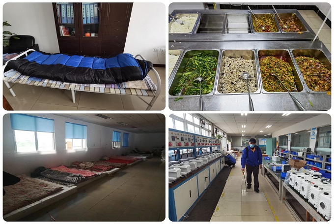 閉環(huán)管理期間,園區(qū)內(nèi)每天多次進行全面的消殺消毒,員工工作時全程佩戴口罩,盡量減少園區(qū)內(nèi)人員交叉接觸;生活上,公司為駐園區(qū)員工準備了生活用品和可口豐富的餐食,盡可能為員工提供舒適、便捷的生活保障。