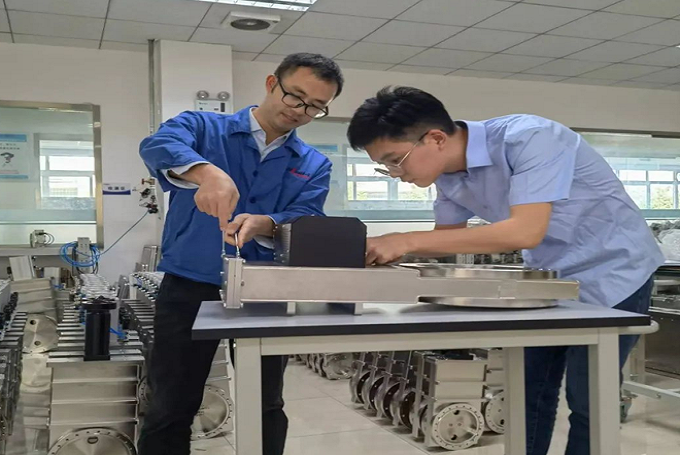 技術(shù)工程師在車間裝配和調(diào)試APC閥門