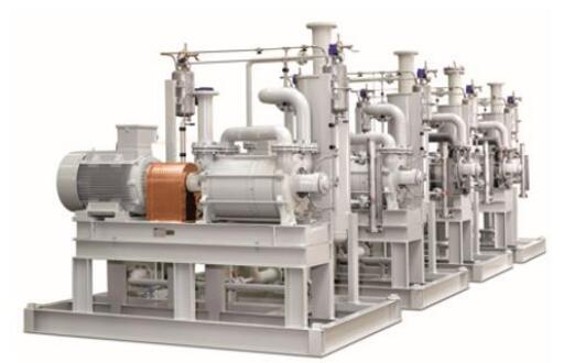 液環(huán)真空泵的原理早在1890年就有研究,即"水環(huán)泵"。由于其結(jié)構(gòu)簡單而堅(jiān)固,液環(huán)真空泵(圖1)適用于抽除潮濕氣體或蒸汽,或者被抽氣體在真空泵內(nèi)部的壓縮過程中發(fā)生冷凝的應(yīng)用中。液環(huán)真空泵特別適用于潮濕的工藝和粗真空的工藝技術(shù),諸如化學(xué)工業(yè)和石油生產(chǎn)和加工、汽輪機(jī)凝汽器抽真空以及塑料工業(yè)、造紙業(yè)、食品工業(yè)和多種其他工業(yè)應(yīng)用。